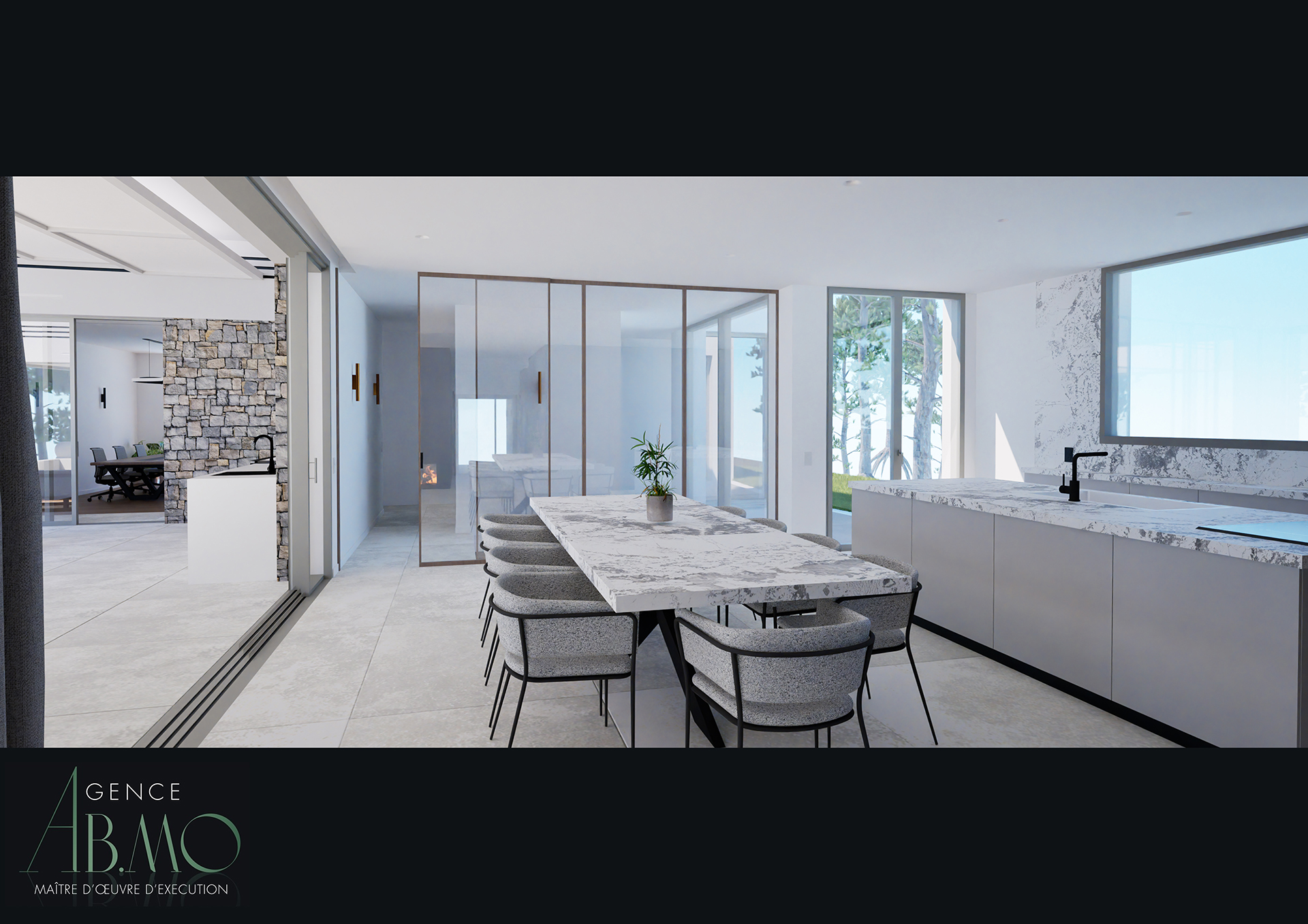 L’agence AB.MO accompagne une agence d’architecture sablaise en sous-traitance sur ce magnifique projet. Notre mission inclut la production de l’ensemble du Dossier de Consultation des Entreprises (DCE), ainsi que la réalisation de visuels architecturaux de haute qualité, permettant une visualisation réaliste et immersive de cette future habitation de prestige en Vendée.